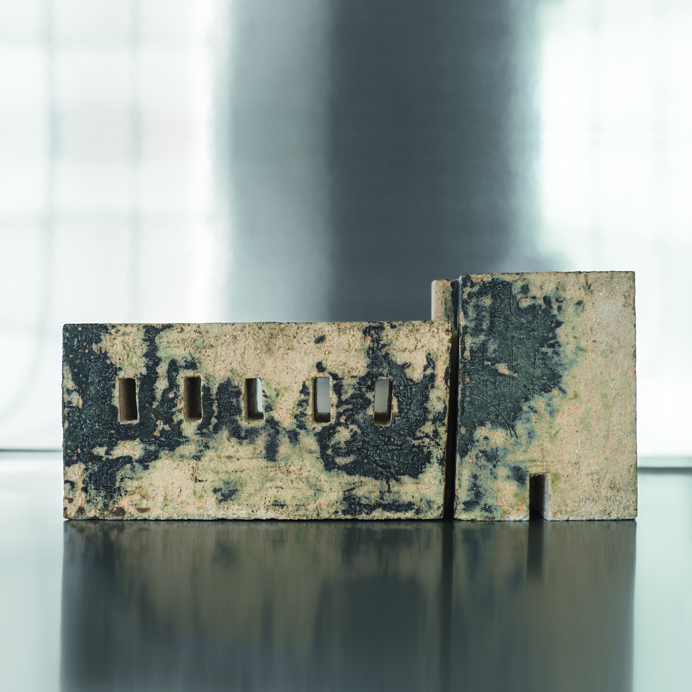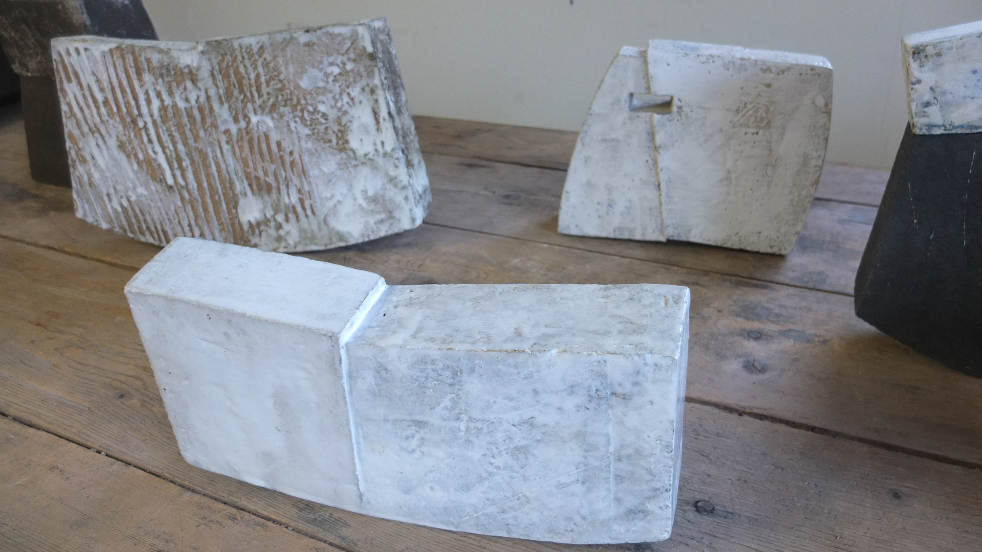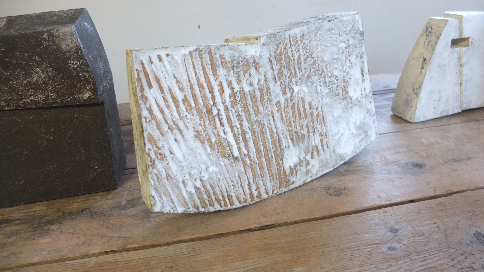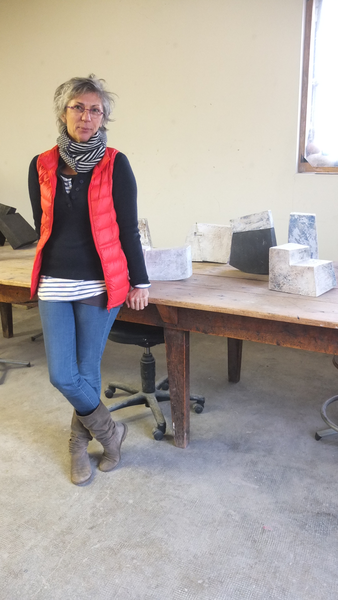 Avec élégance, elle joue avec nos sens, notre imaginaire, avec notre mémoire aussi, par son refus de complaisance dans l’esthétique de l’épure et en distillant, dans ses sculptures de grès, des interférences subtiles qui griffent la surface et éraillent les lignes, comme dans les images fragiles du souvenir.