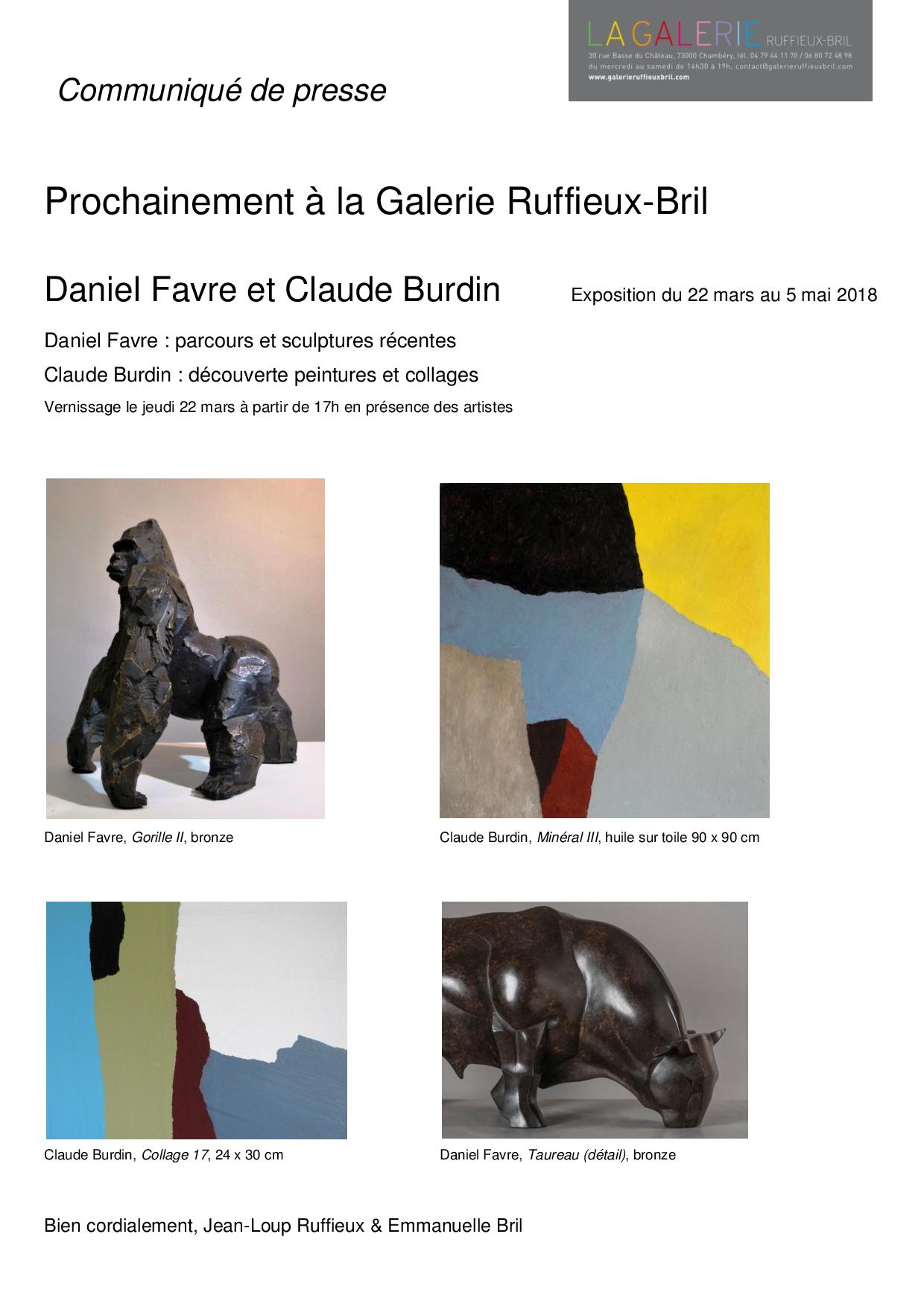 Categories: ExpositionsTags: Art, Chambéry, Claude Burdin, Daniel Favre, Exposition, Galerie d'art, Galerie Ruffieux Bril, Peinture, Sculpture