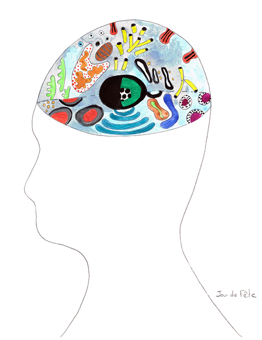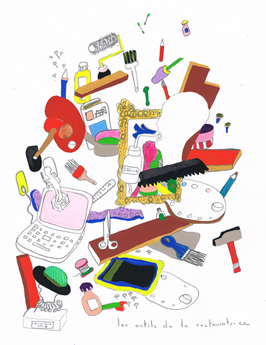 Camille Cloutier est originaire d’Annecy où elle est née en 1977. Elle vit et travaille aujourd’hui à Bruxelles. Elle est diplômée des beaux-arts de Marseille et de Bruxelles, a étudié le dessin à New-York. Comme la personne, gaie et cultivée, son travail de dessins et de gouache nous a plu tout de suite.