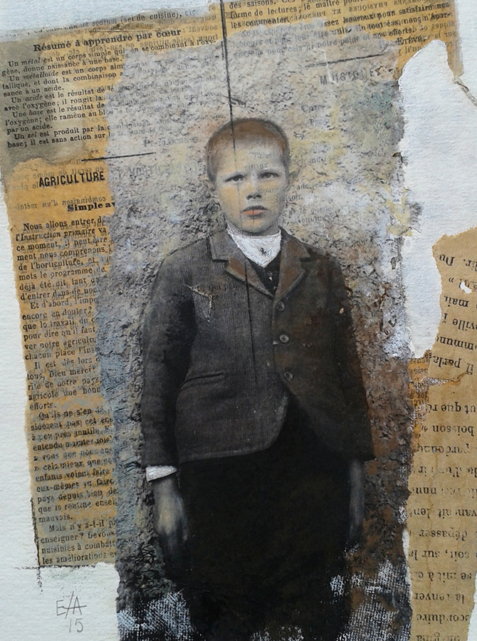 2017, Fuksa-Anselme, L’enfant aux sabots, Techniques mixtes sur papier aquarelle, 22×22 cm