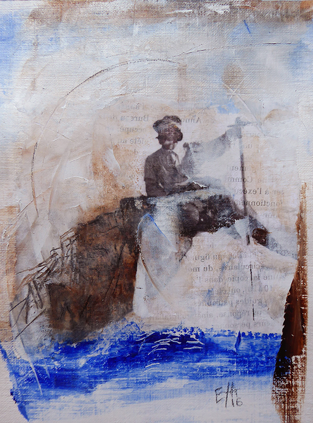 2016, Fuksa-Anselme, La blouse blanche, Techniques mixtes sur papier toilé, 19×14 cm